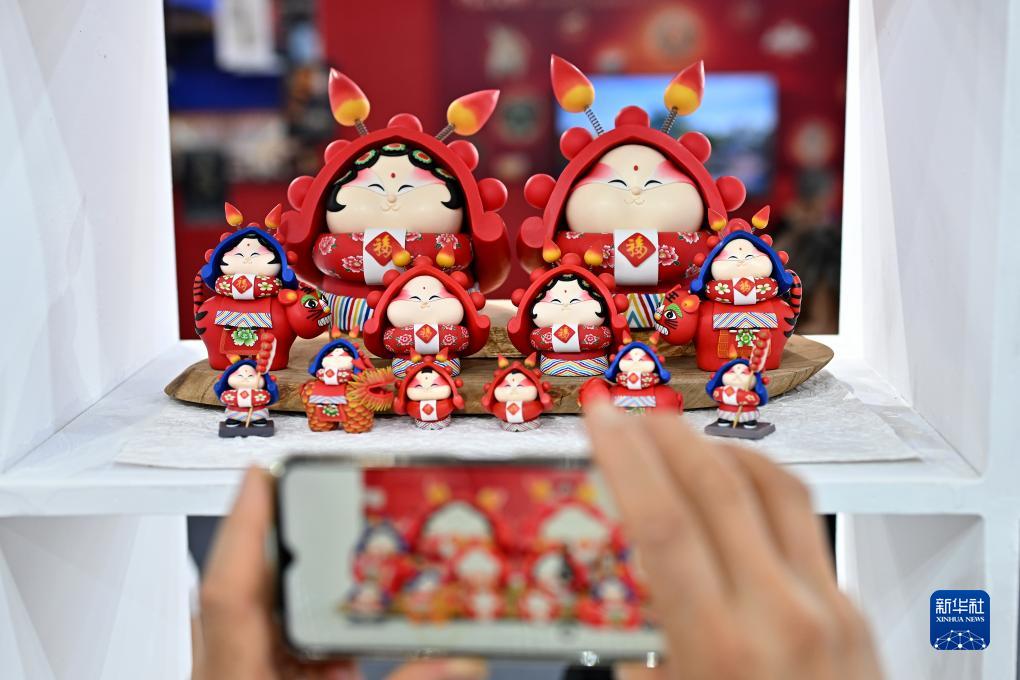 9月6日,參觀(guān)者在服貿會(huì )文旅服務(wù)專(zhuān)題展區拍攝一款兔爺文創(chuàng )產(chǎn)品。