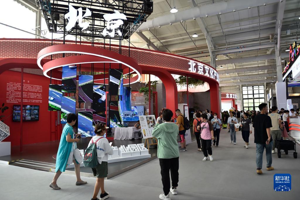 這是9月5日在服貿會(huì )首鋼園區拍攝的文旅服務(wù)專(zhuān)題展區北京文化產(chǎn)業(yè)園展位。