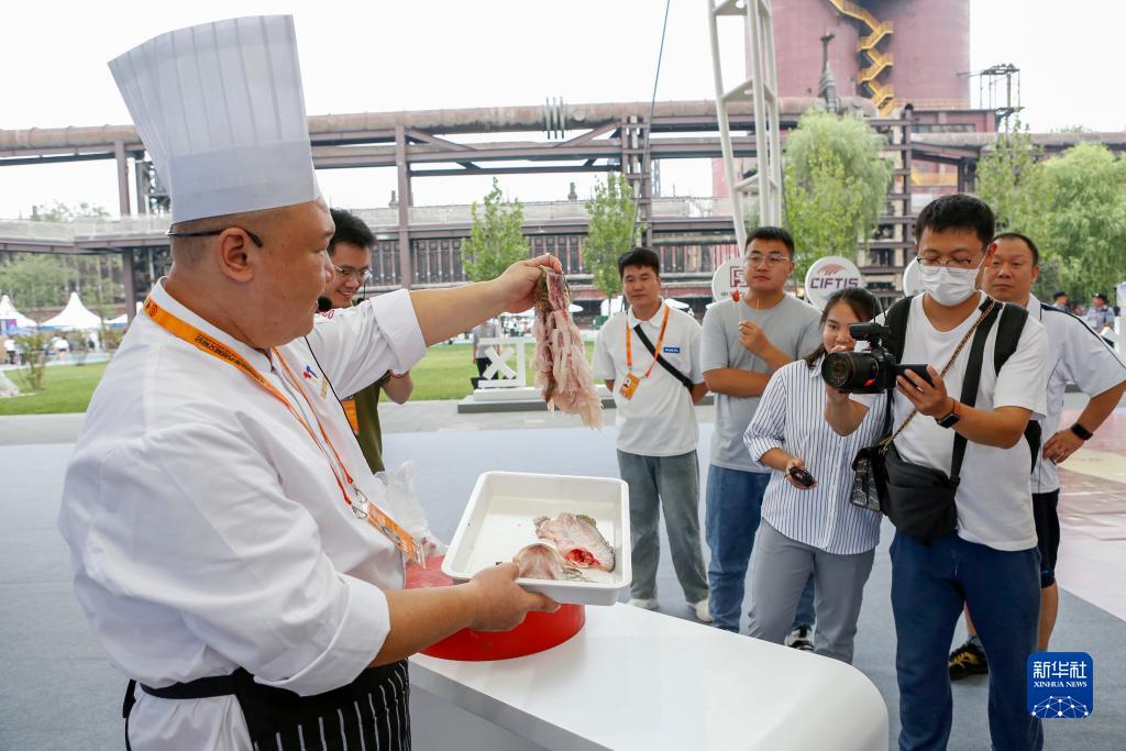 在服貿會(huì )北京老字號創(chuàng )新發(fā)展體驗區,來(lái)自同春園飯店的廚師現場(chǎng)展示松鼠桂魚(yú)去骨和花刀刀法(9月2日攝)。