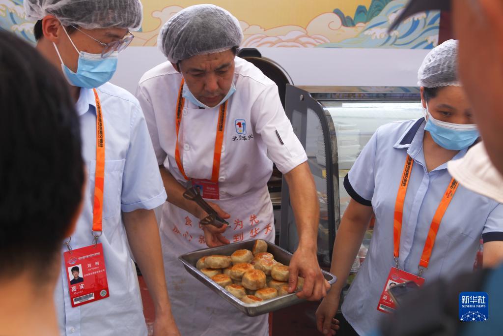9月6日,在服貿會(huì )北京老字號創(chuàng )新發(fā)展體驗區,工作人員端出剛出鍋的肉餅。
