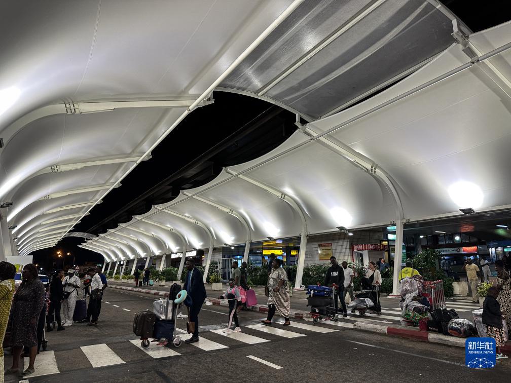 9月6日,在加蓬首都利伯維爾,乘國際航班抵達的旅客走出利伯維爾國際機場(chǎng)(手機照片)。