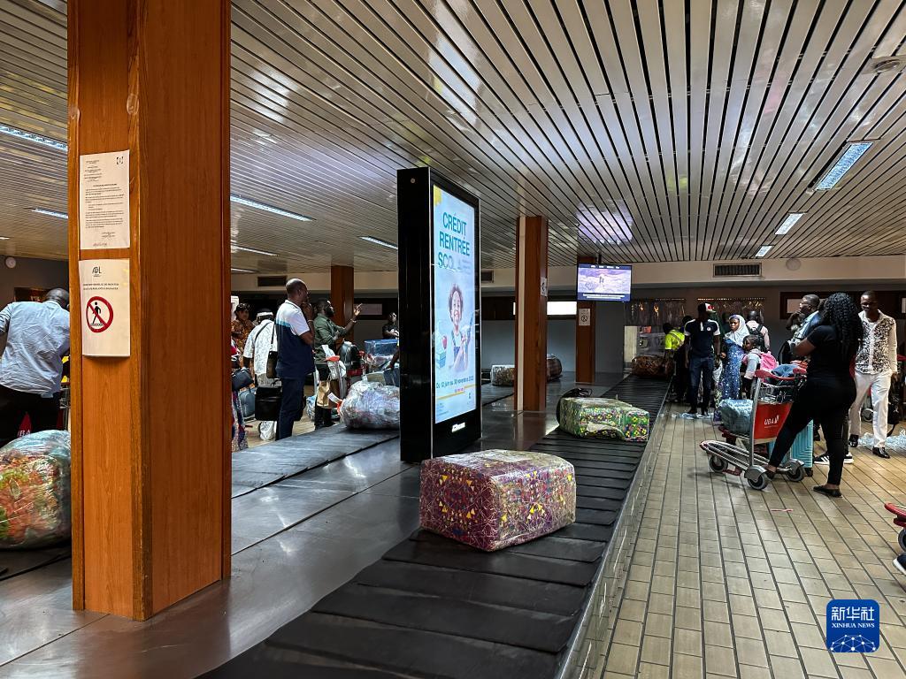 9月6日,在加蓬首都利伯維爾,乘國際航班抵達的旅客在利伯維爾國際機場(chǎng)內取托運行李(手機照片)。