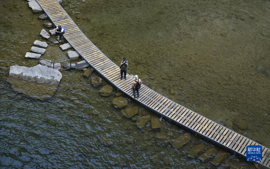 9月6日,游人在太行大峽谷中的桃花谷景區游覽。