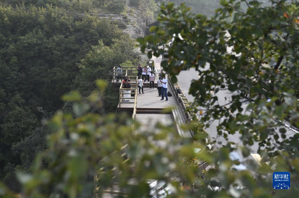 9月6日,游人在太行大峽谷中的一處觀(guān)景臺上觀(guān)景拍照。