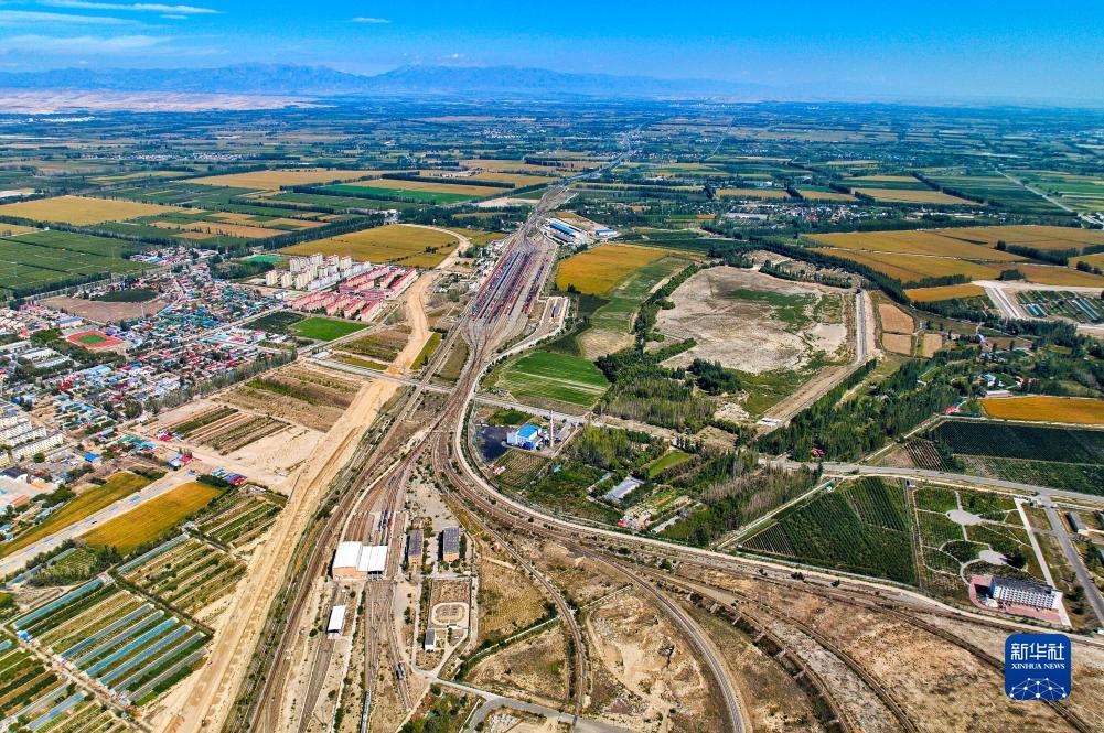 霍爾果斯站準軌場(chǎng)鳥(niǎo)瞰(9月6日攝,無(wú)人機照片)。