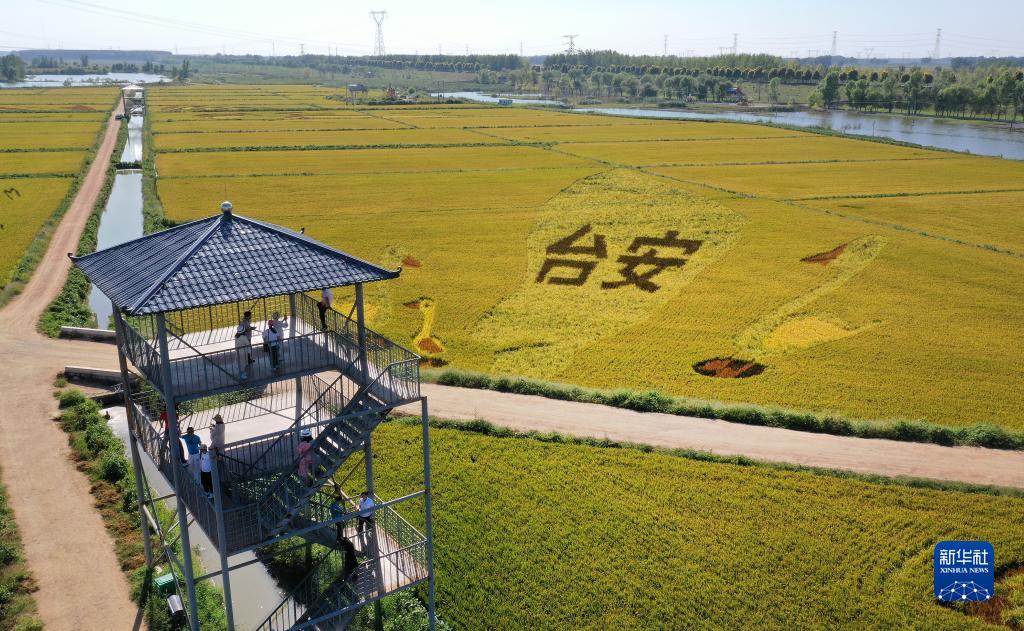 初秋時(shí)節,遼寧省鞍山市臺安縣遼河文化旅游景區的稻田畫(huà)吸引不少游客前來(lái)參觀(guān)游覽。由多種顏色組成的巨型稻田畫(huà)勾勒出豐收壯美景象。