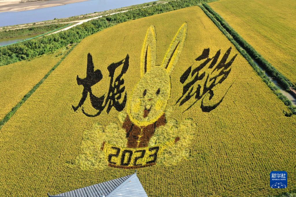 初秋時(shí)節,遼寧省鞍山市臺安縣遼河文化旅游景區的稻田畫(huà)吸引不少游客前來(lái)參觀(guān)游覽。由多種顏色組成的巨型稻田畫(huà)勾勒出豐收壯美景象。
