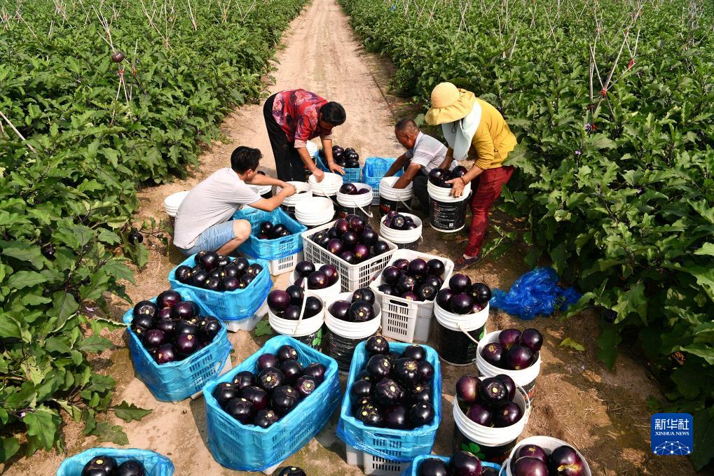 9月7日,在河北省石家莊市欒城區魯家莊村,茄農將收獲的茄子裝箱,準備運往市場(chǎng)銷(xiāo)售。
