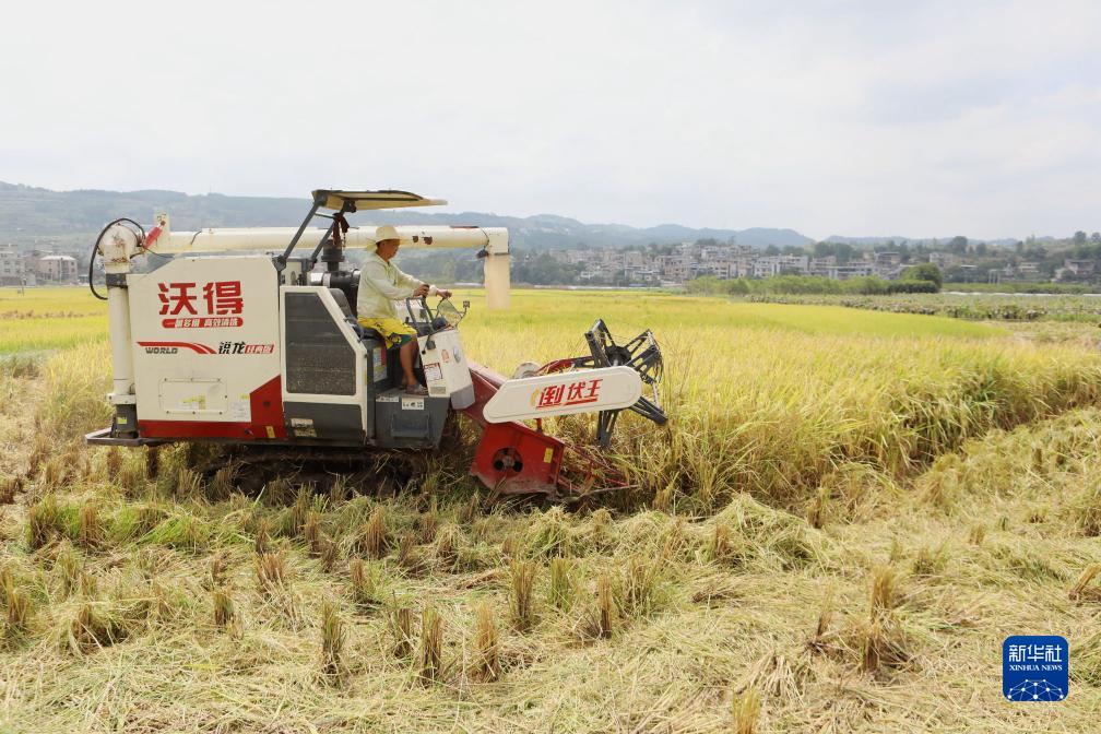 9月6日,農機手駕駛收割機在貴州省黔東南苗族侗族自治州施秉縣城關(guān)鎮伍旗村收割水稻。