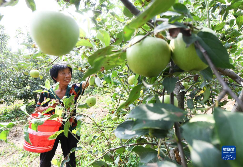 9月6日,河北省石家莊化皮鎮辛合莊村果農在采摘蘋(píng)果。