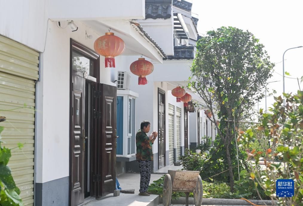 9月7日,已經(jīng)搬遷入住沈集鎮帥店新社區新房的村民在家門(mén)口休閑。