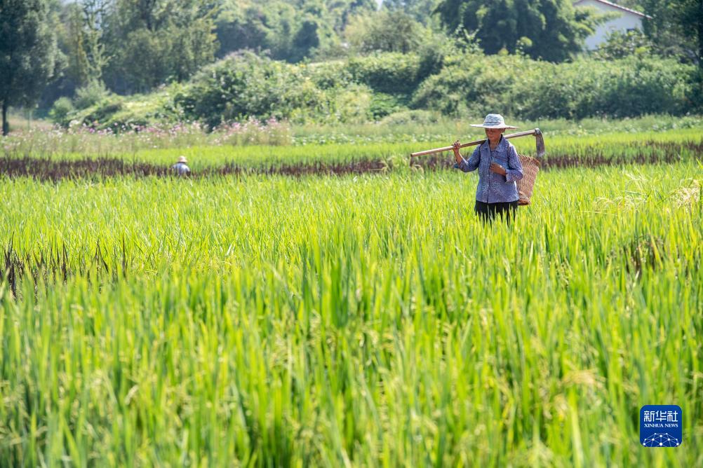 時(shí)下,位于重慶市大足區拾萬(wàn)鎮長(cháng)虹村的隆平五彩田園迎來(lái)秋收季,300畝彩色水稻勾勒出金秋好“豐”景。