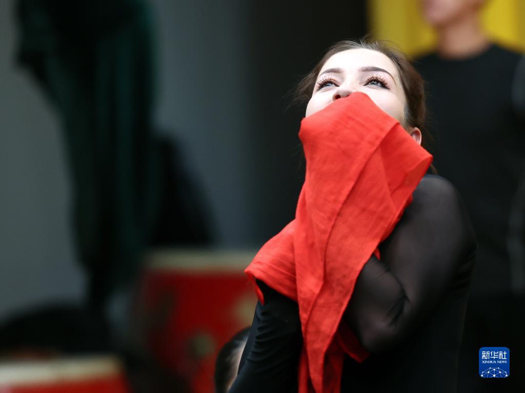 古麗巴努爾·庫爾恰克在排練舞蹈節目《花兒為什么這樣紅》(9月4日攝)。