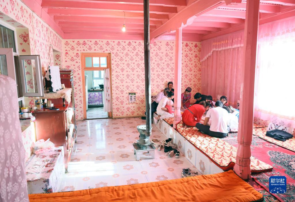 拜合提亞爾·居馬汗一家人在家中吃晚飯(9月4日攝)。