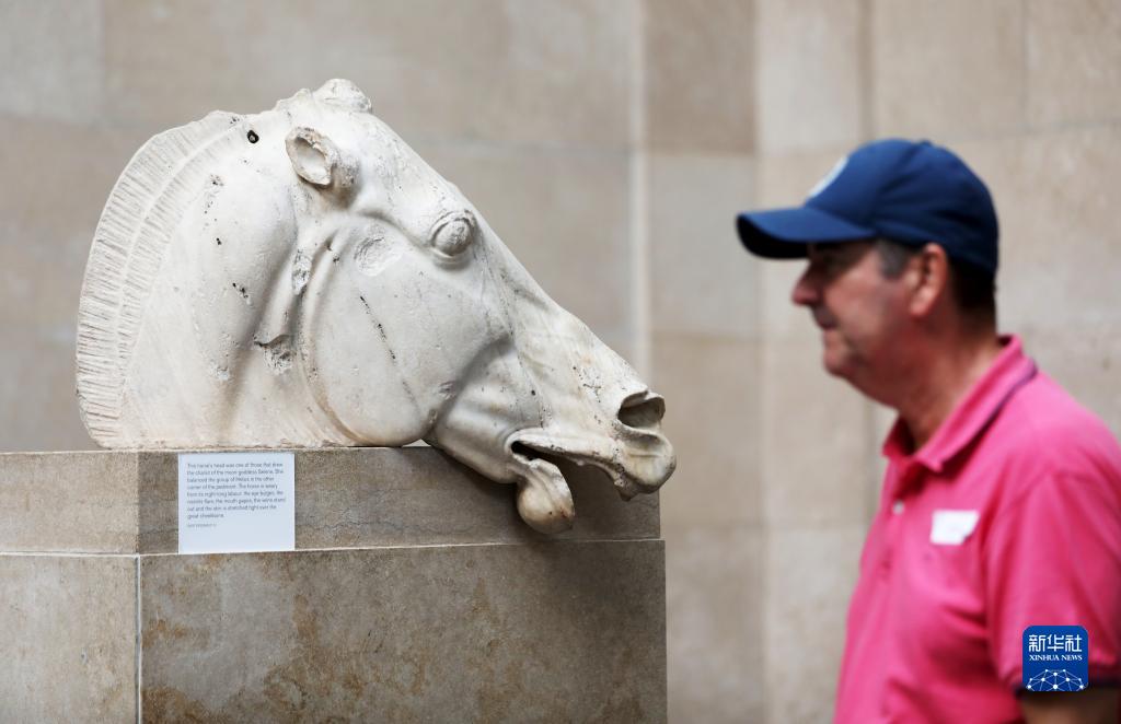 9月7日,一名男子在英國倫敦大英博物館參觀(guān)帕特農神廟大理石雕刻。