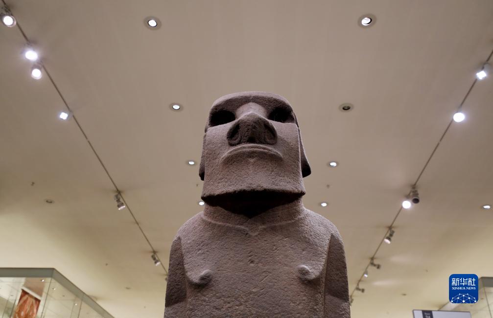 這是9月7日在英國倫敦大英博物館拍攝的“摩艾”石像。