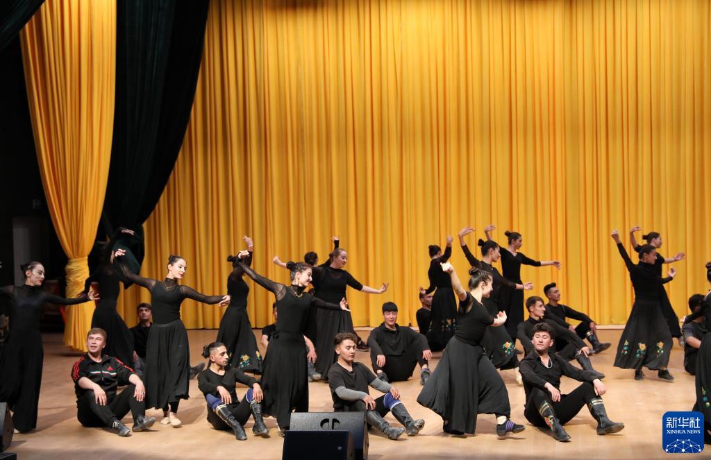 新疆塔縣文工團舞蹈演員在排練鷹舞節目《傳承》(9月4日攝)。新華社記者 程婷婷 攝