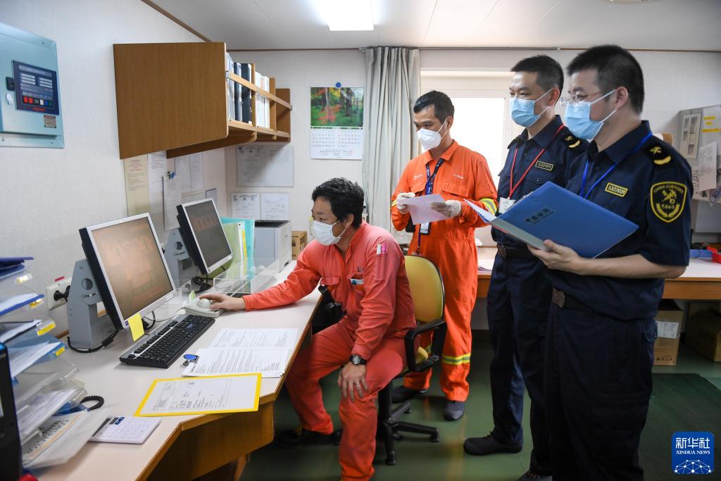 9月7日,深圳海關(guān)關(guān)員在“能量自信”號運輸船上對即將接卸的LNG進(jìn)行取樣準備工作。