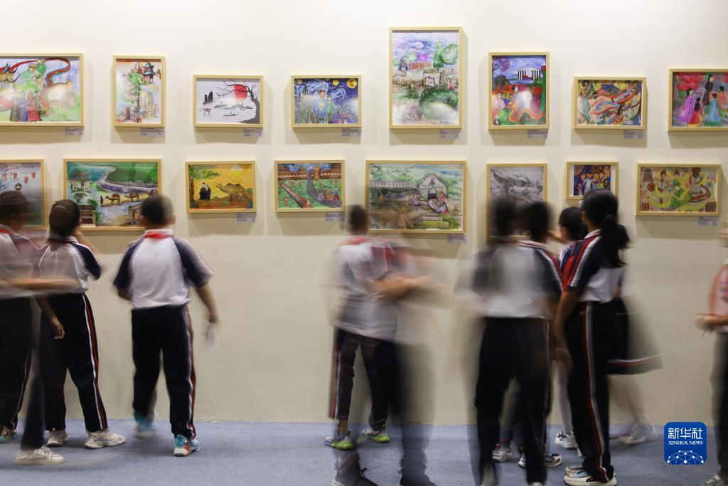 9月7日,學(xué)生們在第六屆絲綢之路(敦煌)國際文化博覽會(huì )上參觀(guān)。