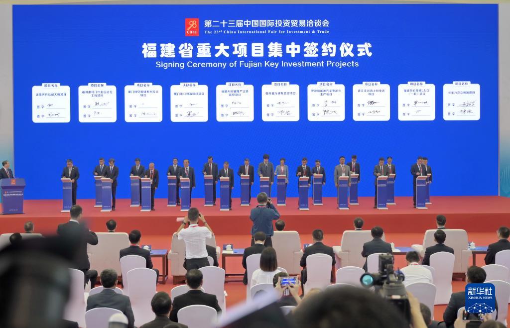 9月8日拍攝的第二十三屆中國國際投資貿易洽談會(huì )福建省重大項目集中簽約儀式現場(chǎng)。
