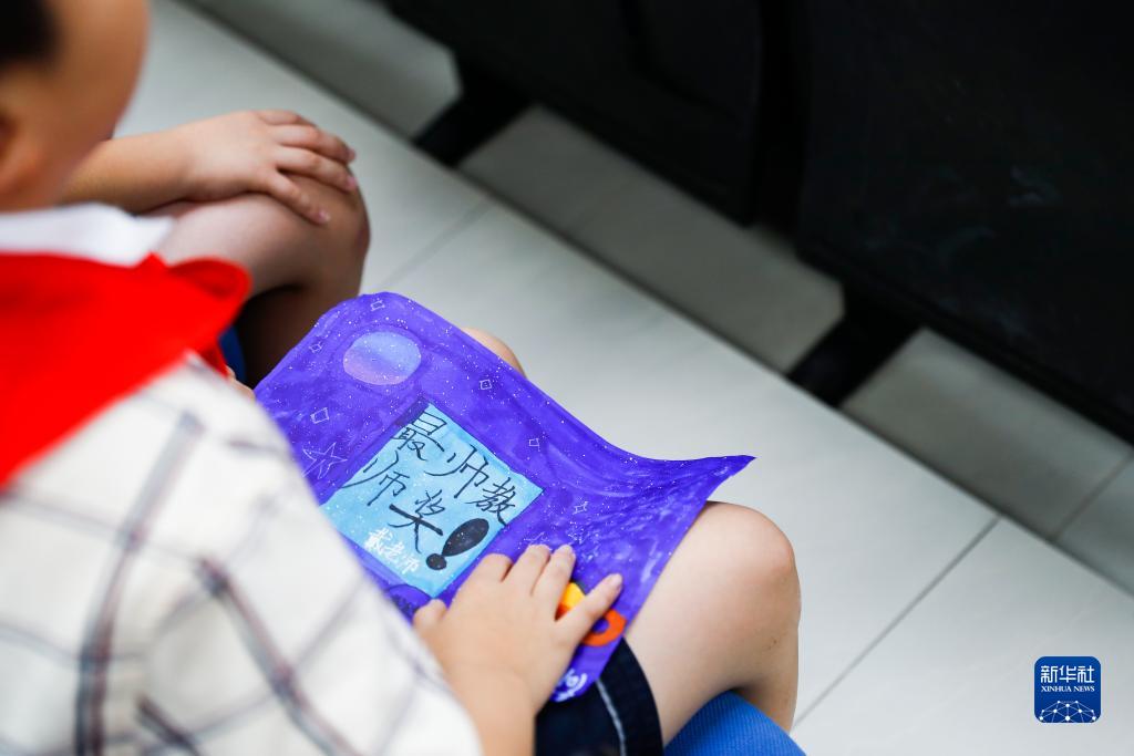 這是9月8日拍攝的南寧市濱湖路小學(xué)的學(xué)生給老師繪制的獎狀。