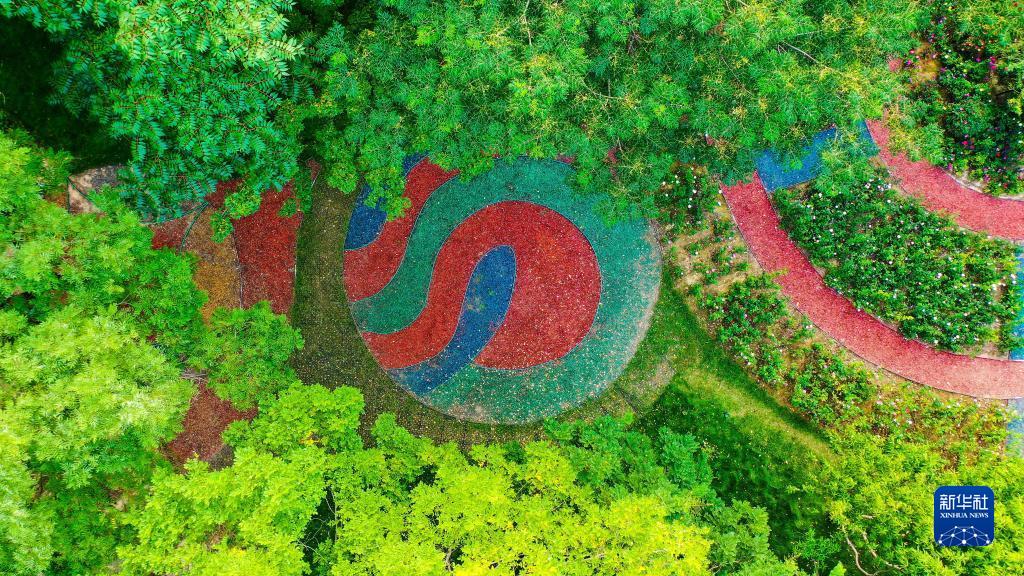 這是9月7日拍攝的德州市行政中心綠地園林景觀(guān)(無(wú)人機照片)。