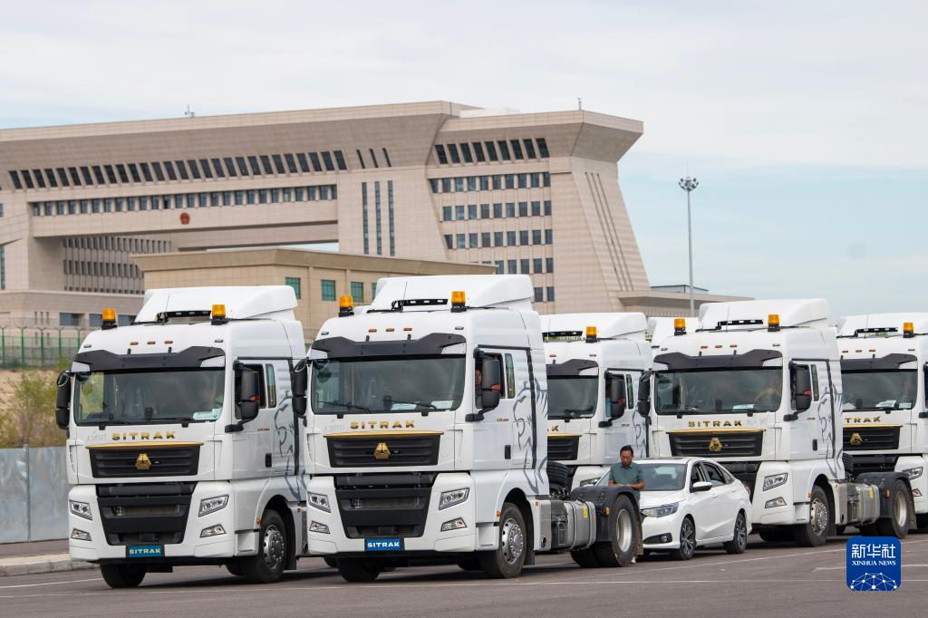 這是在霍爾果斯公路口岸等待出口的車(chē)輛(9月6日攝)。