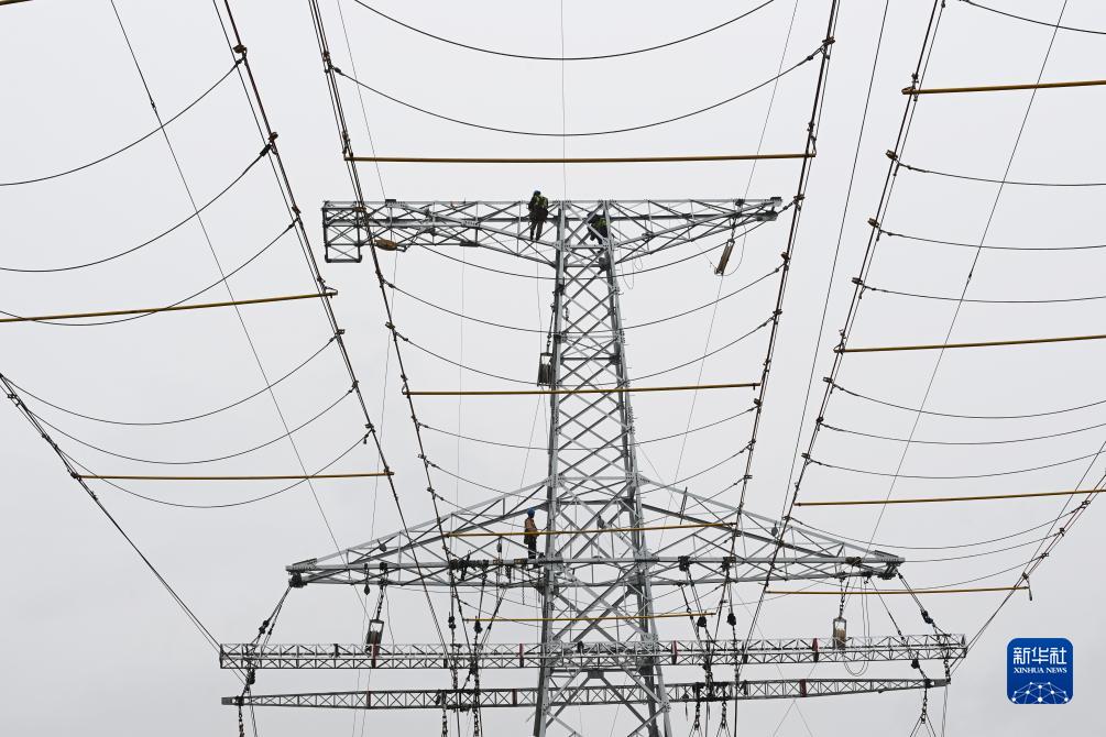 9月8日,工人在武威市天??h境內的蘭新(張)三四線(xiàn)甘肅牽引站330千伏外部供電工程施工現場(chǎng)作業(yè)。