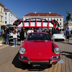9月8日,人們在德國慕尼黑國際車(chē)展城市公共展示區的保時(shí)捷展區參觀(guān)。