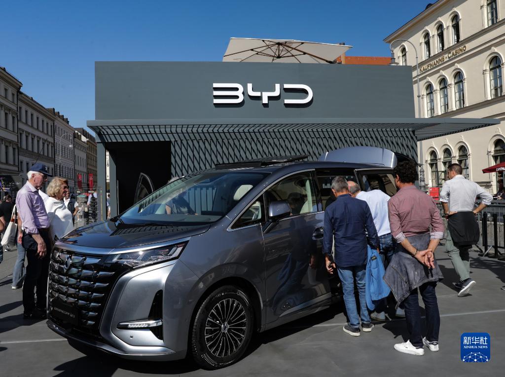 9月8日,人們在德國慕尼黑國際車(chē)展城市公共展示區的比亞迪展區參觀(guān)。