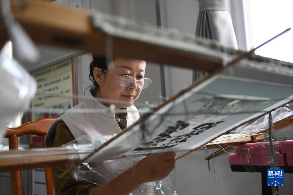 9月8日,在寶雞西秦刺繡文化產(chǎn)業(yè)園,千陽(yáng)繡娘在刺繡。陜西千陽(yáng)縣是國家級非物質(zhì)文化遺產(chǎn)“西秦刺繡”的重要發(fā)祥地和傳承地。近年來(lái),千陽(yáng)縣將西秦刺繡作為助農增收的重要產(chǎn)業(yè),推動(dòng)非遺項目產(chǎn)業(yè)化發(fā)展,助力鄉村振興。