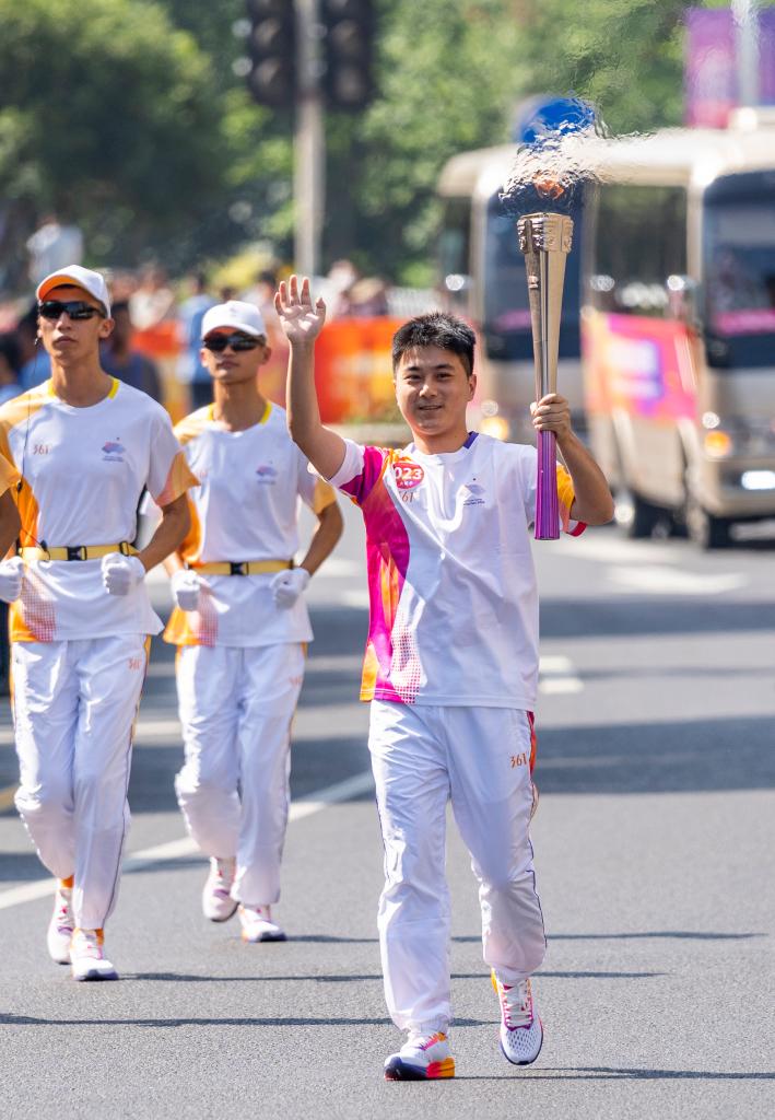 當日,杭州亞運會(huì )火炬在湖州傳遞。