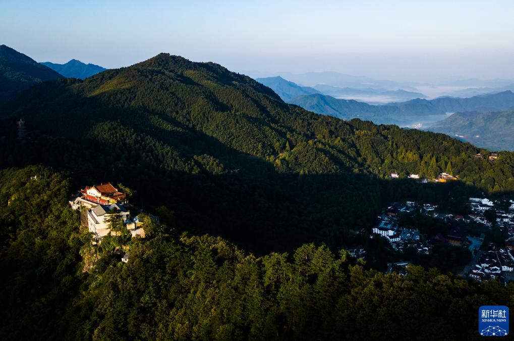 9月9日拍攝的九華山清晨日出時(shí)分景色(無(wú)人機照片)。