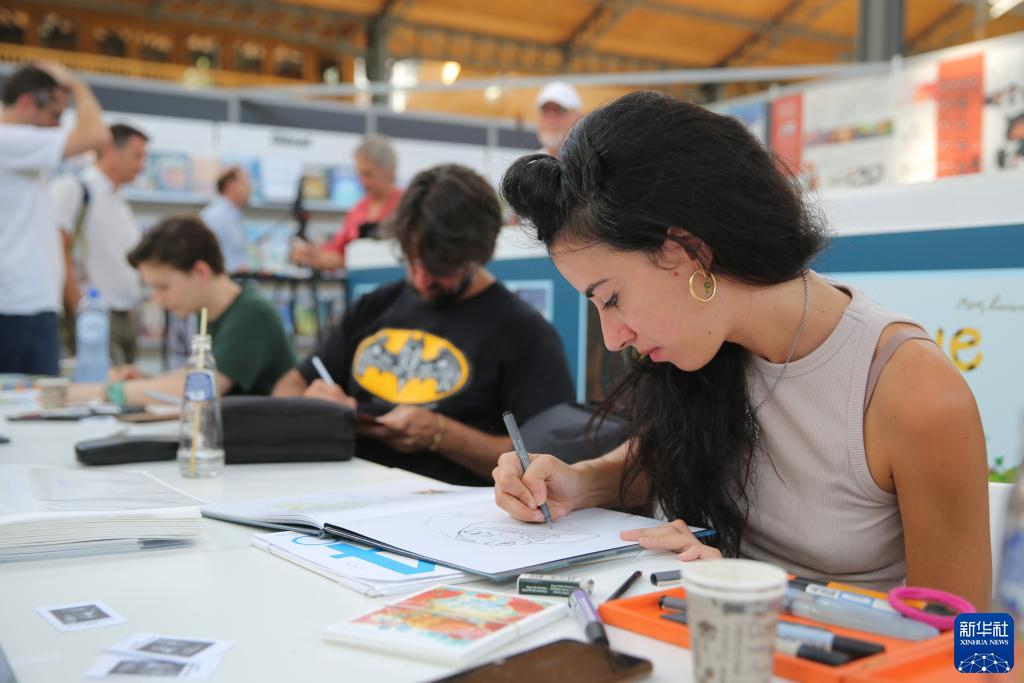 9月8日,漫畫(huà)作者在比利時(shí)布魯塞爾漫畫(huà)節上現場(chǎng)作畫(huà)。