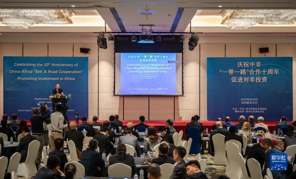 這是9月8日在埃塞俄比亞首都亞的斯亞貝巴拍攝的“慶祝中非‘一帶一路’合作十周年暨促進(jìn)對非投資”主題會(huì )議現場(chǎng)。