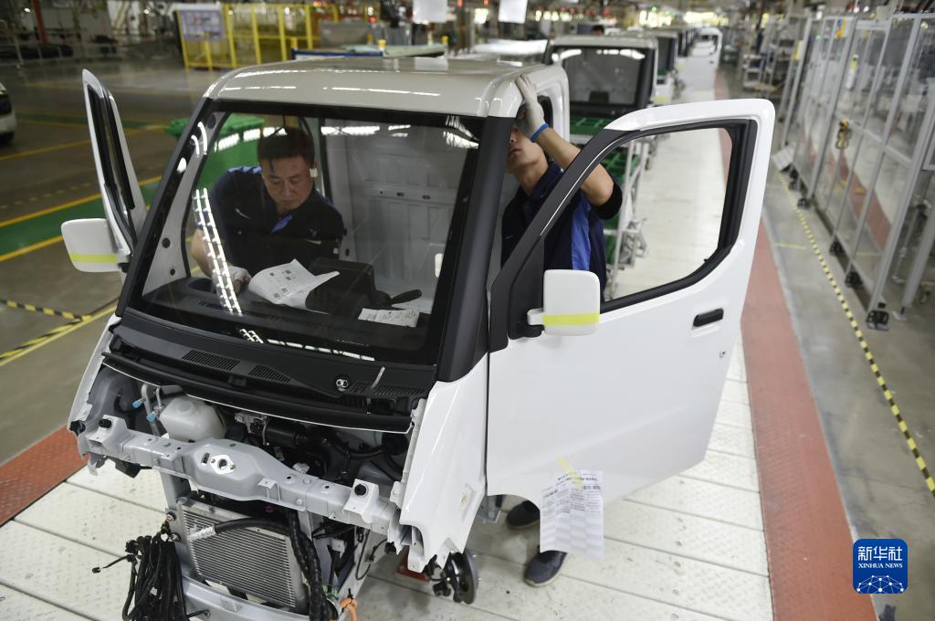 9月8日,河南省安陽(yáng)市安陽(yáng)縣一家新能源汽車(chē)制造企業(yè)的工作人員在車(chē)間進(jìn)行裝配作業(yè)。