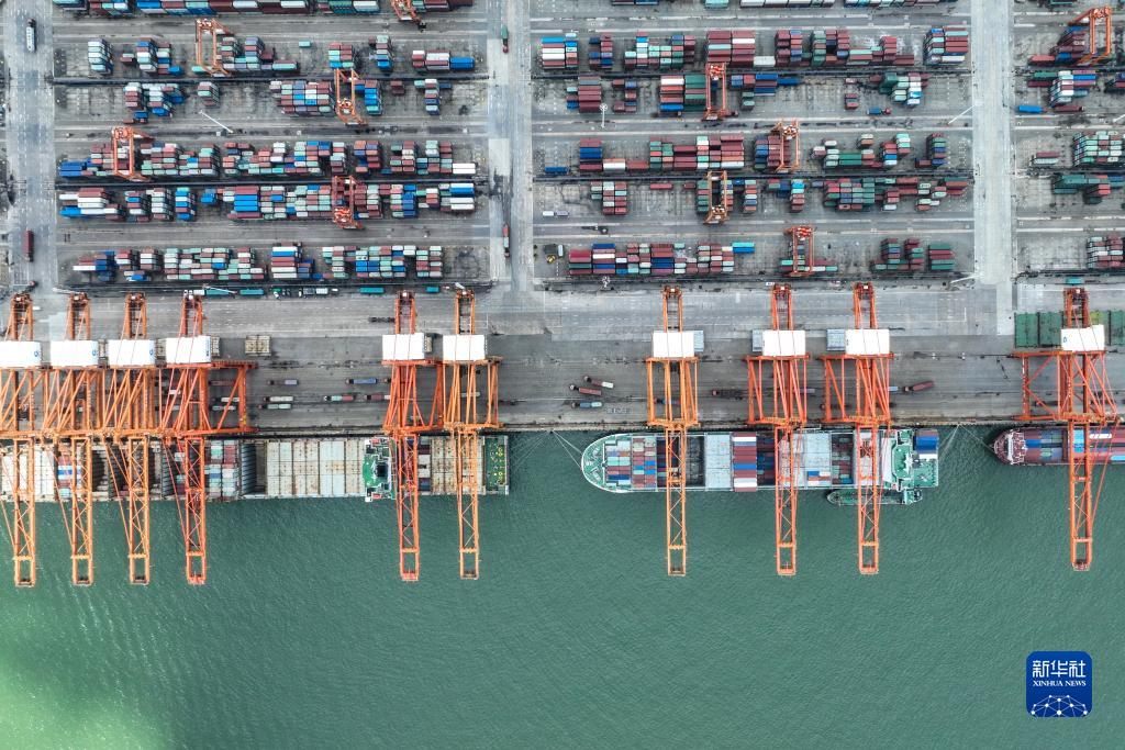 這是2023年7月22日拍攝的北部灣港欽州自動(dòng)化集裝箱碼頭(無(wú)人機照片)。