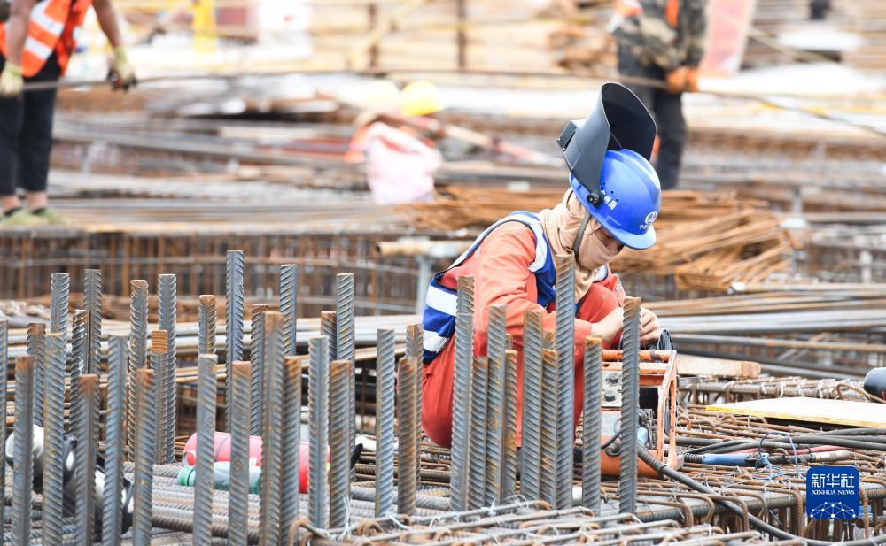 9月9日,工人在??谛潞8酆湍细邸岸€(xiàn)口岸”(貨運)集中查驗場(chǎng)所建設項目上施工作業(yè)。