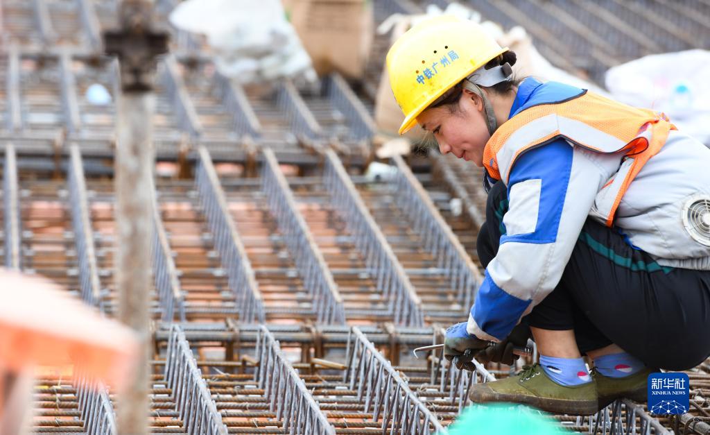 9月9日,工人在??谛潞8酆湍细邸岸€(xiàn)口岸”(貨運)集中查驗場(chǎng)所建設項目上施工作業(yè)。
