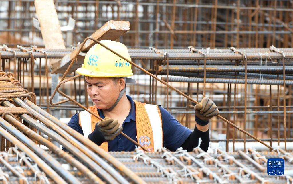 9月9日,工人在??谛潞8酆湍细邸岸€(xiàn)口岸”(貨運)集中查驗場(chǎng)所建設項目上施工作業(yè)。
