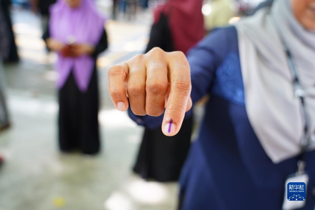 9月9日,在馬爾代夫馬累,一名選民投票后展示做過(guò)標記的手指。