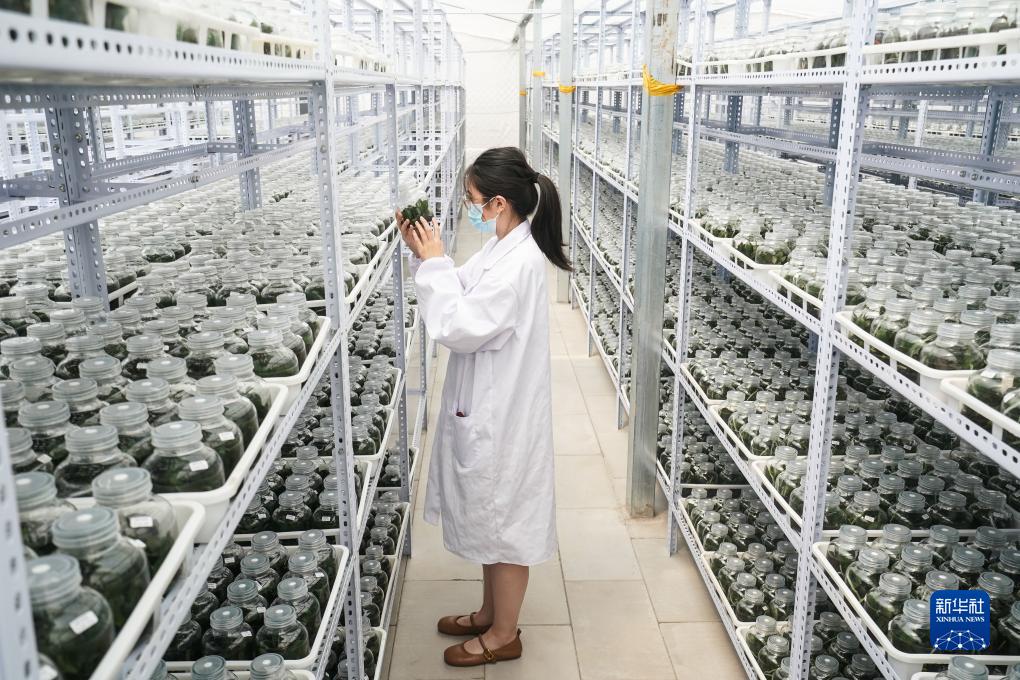 9月9日,技術(shù)人員在宿遷市王官集鎮蝴蝶蘭大世界查看瓶苗生長(cháng)情況。