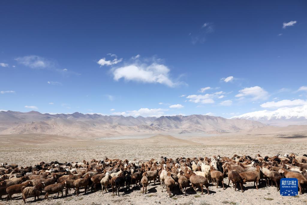 在“冰川之父”慕士塔格峰腳下,新疆塔什庫爾干塔吉克自治縣塔合曼鄉境內的一片天然草場(chǎng)吸引周邊鄉村的牧羊人在此放牧。進(jìn)入秋季以來(lái),草場(chǎng)漸漸泛黃,屹立于遠處的慕士塔格峰和公格爾九別峰在藍天白云的映襯下格外壯美,一幅寧靜悠遠的牧羊圖引人入勝。