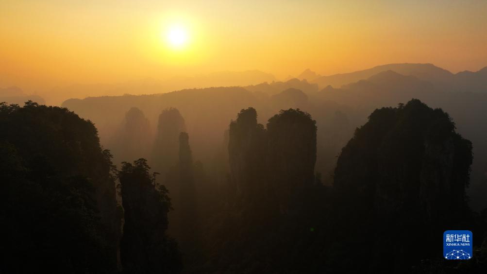 9月9日在湖南張家界國家森林公園黃石寨拍攝的日出景色。