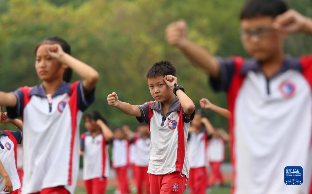 9月9日,在山東省樂(lè )陵市夢(mèng)之家學(xué)校,學(xué)生學(xué)習形意五行拳。新華社發(fā)(李志軍 攝)