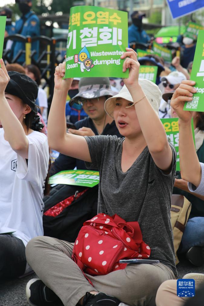 當日,韓國多個(gè)在野黨與市民團體在首爾市中心舉行集會(huì ),要求日本政府停止福島核污染水排海行為。