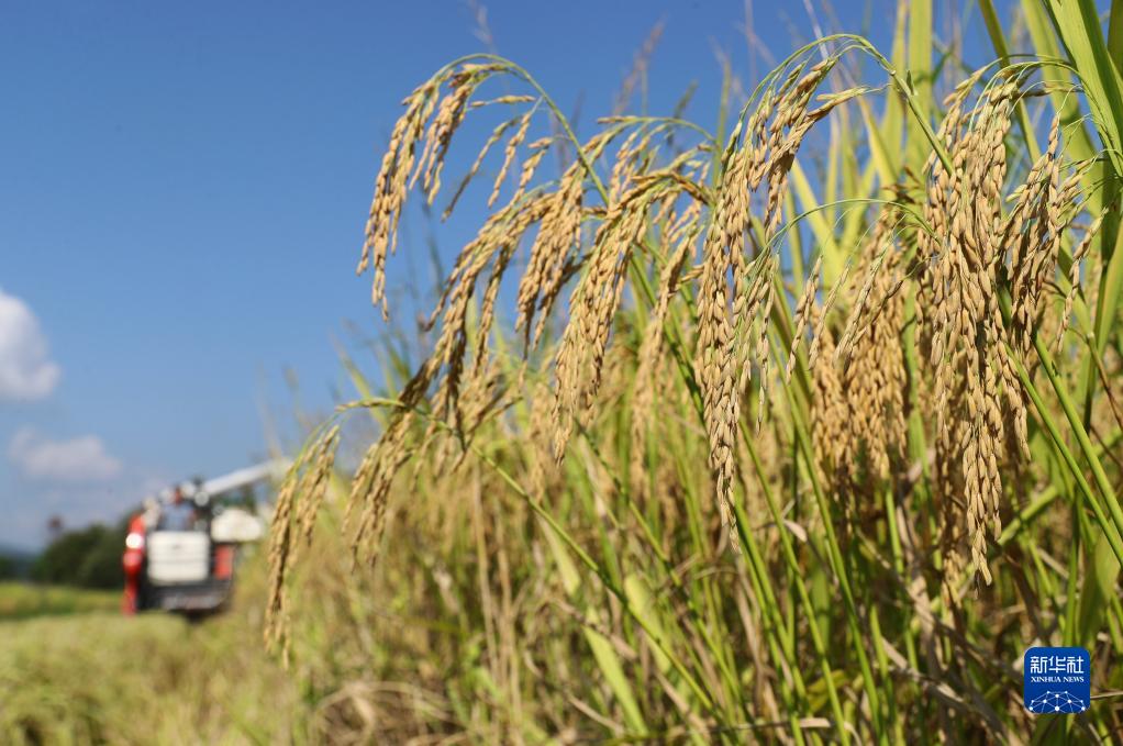 9月9日,在湖南省衡陽(yáng)市衡東縣楊林鎮,當地村民駕駛農機收割水稻。