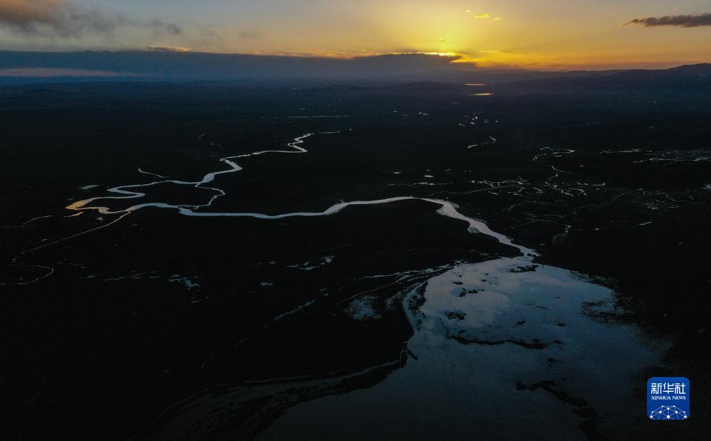 這是8月22日在四川省阿壩藏族羌族自治州若爾蓋縣拍攝的花湖,花湖之水經(jīng)黑河匯入黃河干流(無(wú)人機照片)。