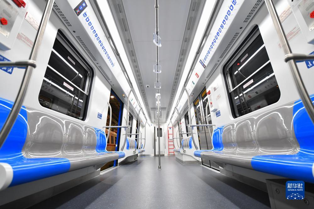 這是在中車(chē)株機公司拍攝的中國中車(chē)出口墨西哥城輕軌列車(chē)首列車(chē)內景(9月9日攝)。