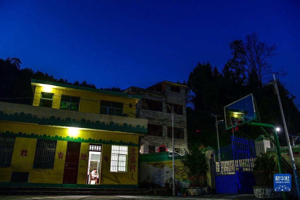 陸成文在巖腳教學(xué)點(diǎn)的辦公室里寫(xiě)教案(9月6日攝)。